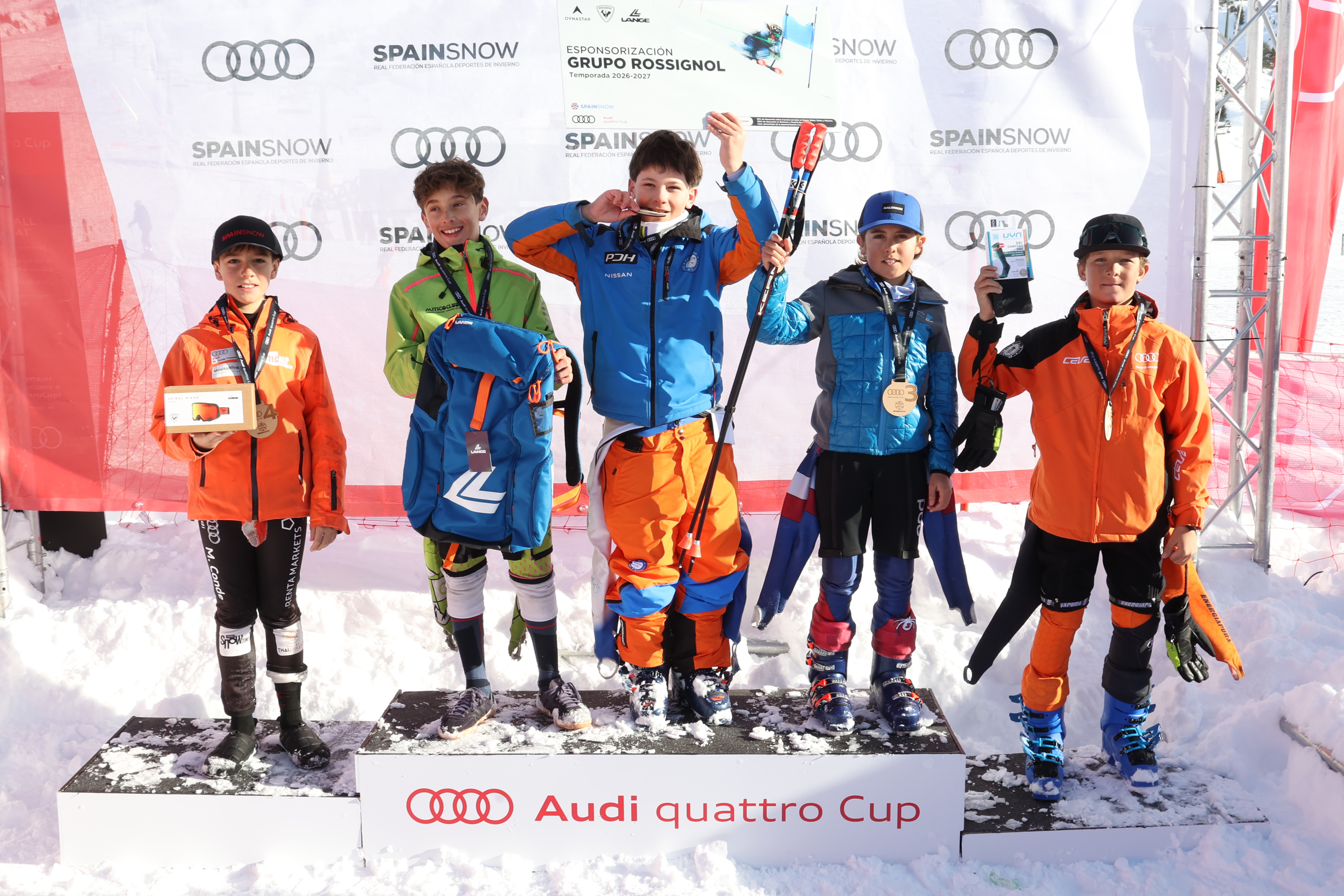 Rossignol ha apostado con fuerza por el deporte base ofreciendo los premios a los cinco primeros clasificados de las categorías de U10 y U12 en todas las pruebas del circuito de Audi quattro Cup.